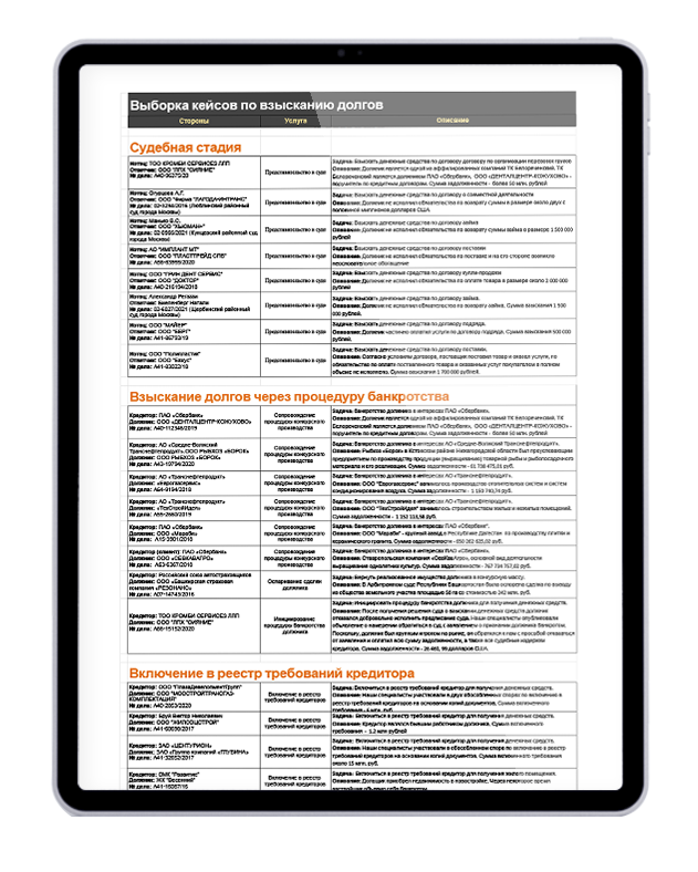Услуга: «СОПРОВОЖДЕНИЕ ПРОЦЕДУРЫ РЕСТРУКТУРИЗАЦИИ ДОЛГА»